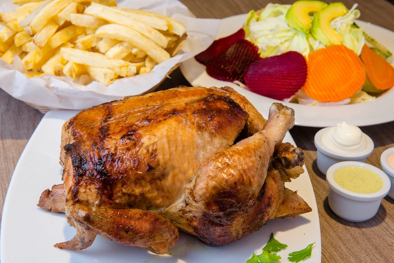 Incluye un pollo entero a la brasa, acompañado de dos guarniciones a elección (papas fritas, arroz, ensalada o choclo) y dos gaseosas de 1.5L. Ideal para compartir entre 4-6 personas.