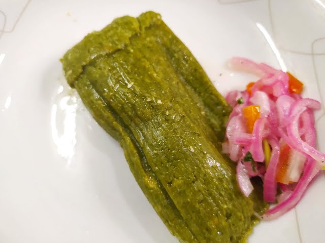 Tamal de maíz con culantro.